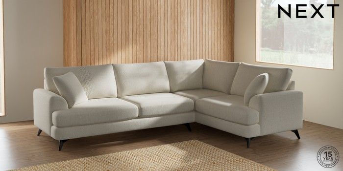 7.2.5 Buy Parker Large Corner Sofa - Right Hand Chunky Texture Oyster High Metal - Black from the Next UK online shop Click here to use our accessible website