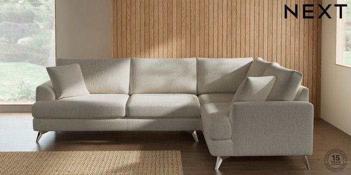 7.2.10 Buy Parker Large Corner Sofa - Right Hand Chunky Texture Oyster High Metal - Chrome from the Next UK online shop Click here to use our accessible website
