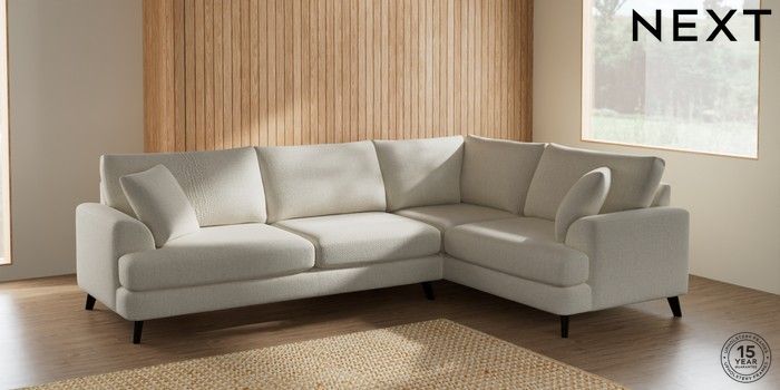 7.2.5 Buy Parker Large Corner Sofa - Right Hand Chunky Texture Oyster Low Retro Tapered - Dark from the Next UK online shop Click here to use our accessible website