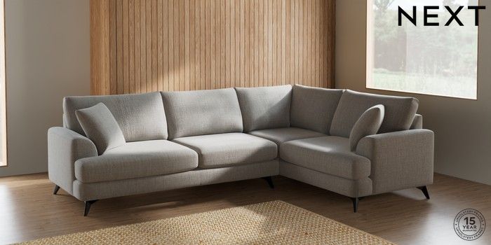 7.2.5 Buy Parker Large Corner Sofa - Right Hand Chunky Weave Dove Grey High Metal - Black from the Next UK online shop Click here to use our accessible website