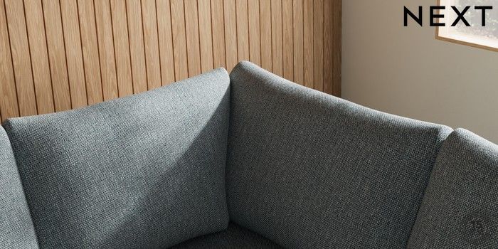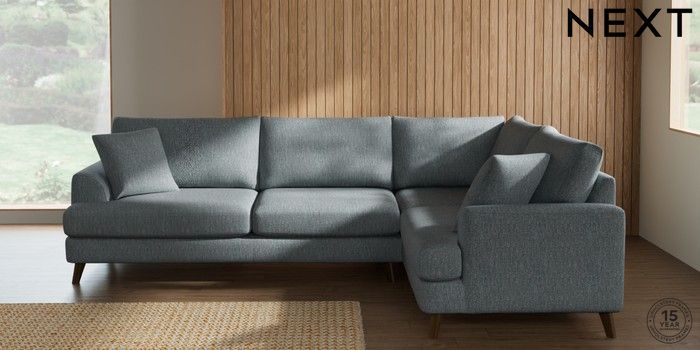 7.2.10 Buy Parker Large Corner Sofa - Right Hand Chunky Weave Mid Blue Low Retro Tapered - Mid from the Next UK online shop Click here to use our accessible website