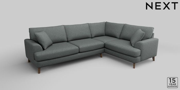 6.12.1 Buy Parker Large Corner Sofa - Right Hand Chunky Weave Mid Grey Low Retro Tapered - Mid from the Next UK online shop Click here to use our accessible website