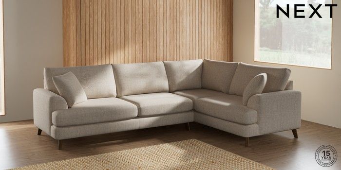 7.2.5 Buy Parker Large Corner Sofa - Right Hand Chunky Weave Mid Natural Low Retro Tapered - Mid from the Next UK online shop Click here to use our accessible website
