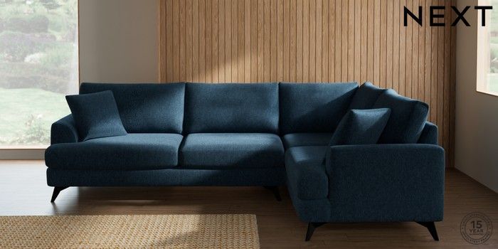7.2.10 Buy Parker Large Corner Sofa - Right Hand Cotswold Chenille Dark Blue High Metal - Black from the Next UK online shop Click here to use our accessible website