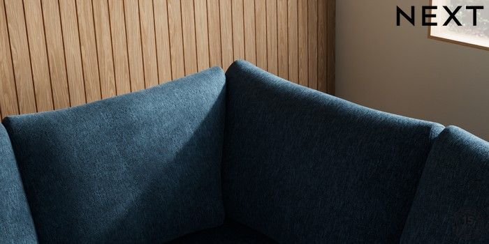 7.2.10 Buy Parker Large Corner Sofa - Right Hand Cotswold Chenille Dark Blue Low Retro Tapered - Dark from the Next UK online shop Click here to use our accessible website