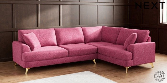 7.2.5 Buy Parker Large Corner Sofa - Right Hand Cotswold Chenille Dark Raspberry Pink High Metal - Brass from the Next UK online shop Click here to use our accessible website