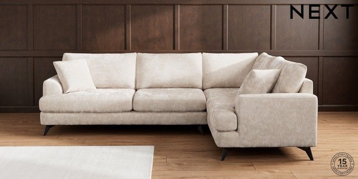 7.2.10 Buy Parker Large Corner Sofa - Right Hand Distressed Velour Mid Natural High Metal - Black from the Next UK online shop Click here to use our accessible website