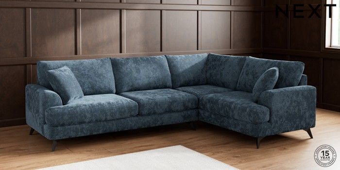 7.2.5 Buy Parker Large Corner Sofa - Right Hand Distressed Velour Midnight Blue High Metal - Black from the Next UK online shop Click here to use our accessible website