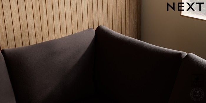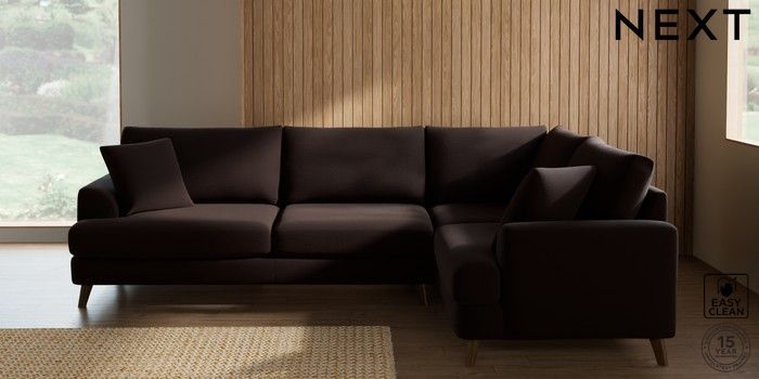 7.2.10 Buy Parker Large Corner Sofa - Right Hand Fine Chenille Easy Clean Chocolate Brown Low Retro Tapered - Mid from the Next UK online shop Click here to use our accessible website