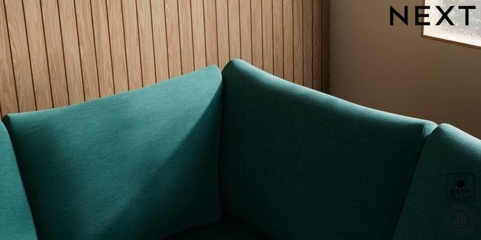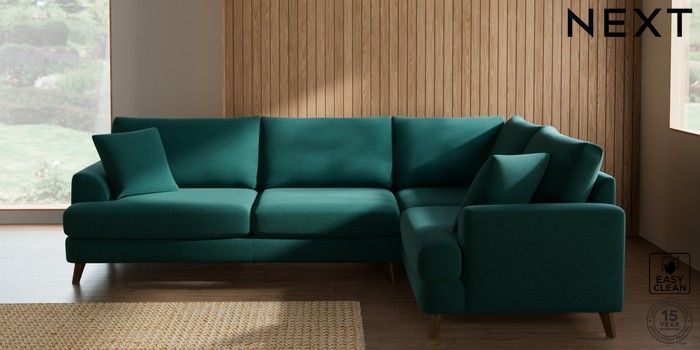 7.2.10 Buy Parker Large Corner Sofa - Right Hand Fine Chenille Easy Clean Dark Juniper Green Low Retro Tapered - Mid from the Next UK online shop Click here to use our accessible website