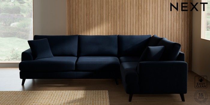 7.3.1 Buy Parker Large Corner Sofa - Right Hand Fine Chenille Easy Clean Dark Navy Blue Low Retro Tapered - Dark from the Next UK online shop Click here to use our accessible website
