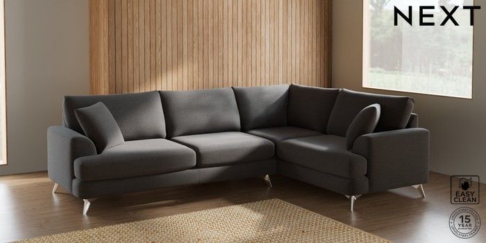 7.2.5 Buy Parker Large Corner Sofa - Right Hand Fine Chenille Easy Clean Dark Smoke Grey High Metal - Chrome from the Next UK online shop Click here to use our accessible website