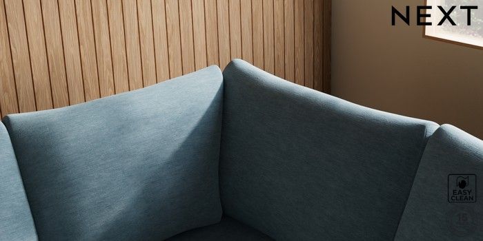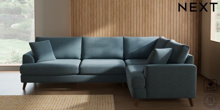 7.2.10 Buy Parker Large Corner Sofa - Right Hand Fine Chenille Easy Clean Mid Blue Low Retro Tapered - Mid from the Next UK online shop Click here to use our accessible website