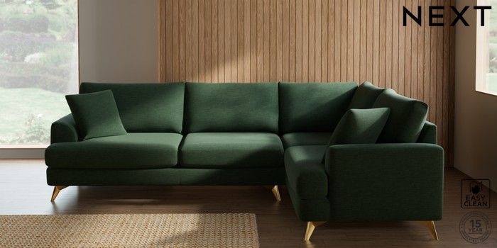 7.3.1 Buy Parker Large Corner Sofa - Right Hand Fine Chenille Easy Clean Mid Khaki Green High Metal - Brass from the Next UK online shop Click here to use our accessible website