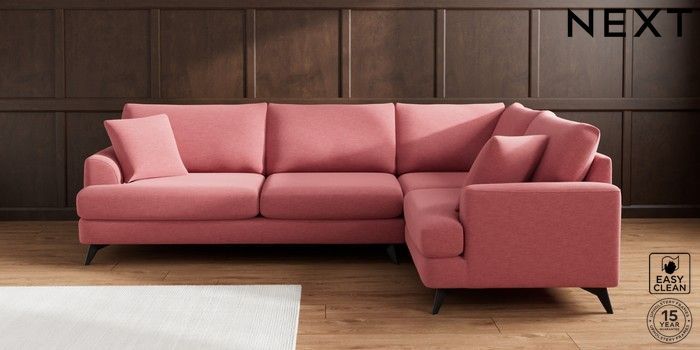 7.2.10 Buy Parker Large Corner Sofa - Right Hand Fine Chenille Easy Clean Mid Pink High Metal - Black from the Next UK online shop Click here to use our accessible website
