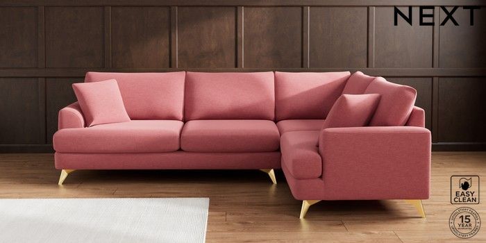 7.3.1 Buy Parker Large Corner Sofa - Right Hand Fine Chenille Easy Clean Mid Pink High Metal - Brass from the Next UK online shop Click here to use our accessible website