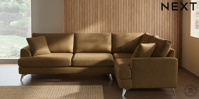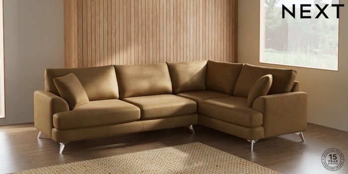 7.0.3 Buy Parker Large Corner Sofa - Right Hand Luxe Chenille Honey Yellow High Metal - Chrome from the Next UK online shop Click here to use our accessible website