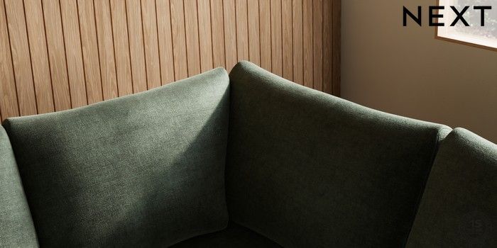 7.0.3 Buy Parker Large Corner Sofa - Right Hand Luxe Chenille Mid Green Low Retro Tapered - Mid from the Next UK online shop Click here to use our accessible website