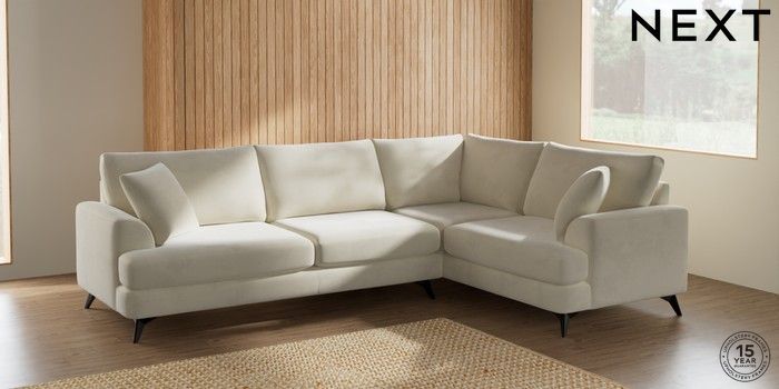 7.0.3 Buy Parker Large Corner Sofa - Right Hand Luxe Chenille Oyster High Metal - Black from the Next UK online shop Click here to use our accessible website