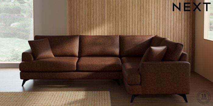 7.3.1 Buy Parker Large Corner Sofa - Right Hand Monza Faux Leather Easy Clean Chestnut Brown High Metal - Black from the Next UK online shop Click here to use our accessible website
