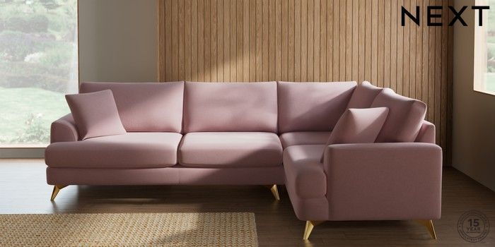 7.3.1 Buy Parker Large Corner Sofa - Right Hand Natural Mix Light Rose Pink High Metal - Brass from the Next UK online shop Click here to use our accessible website