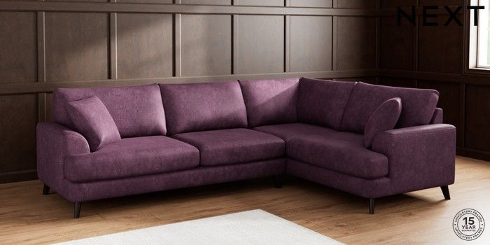 7.2.5 Buy Parker Large Corner Sofa - Right Hand Plush Chenille Dark Plum Purple Low Retro Tapered - Dark from the Next UK online shop Click here to use our accessible website