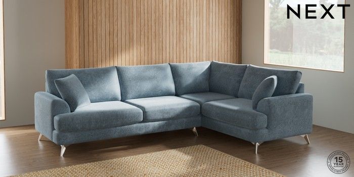 7.2.6 Buy Parker Large Corner Sofa - Right Hand Plush Chenille Light Blue High Metal - Chrome from the Next UK online shop Click here to use our accessible website