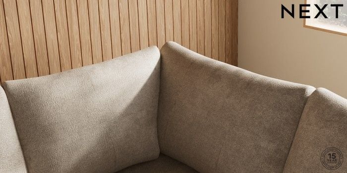 7.2.10 Buy Parker Large Corner Sofa - Right Hand Plush Chenille Light Natural High Metal - Black from the Next UK online shop Click here to use our accessible website