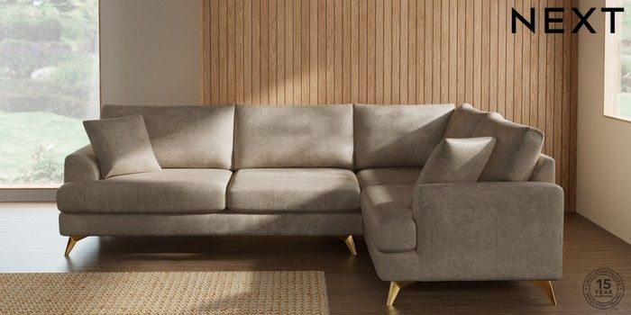 7.2.10 Buy Parker Large Corner Sofa - Right Hand Plush Chenille Light Natural High Metal - Brass from the Next UK online shop Click here to use our accessible website