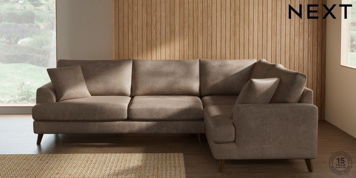 7.2.10 Buy Parker Large Corner Sofa - Right Hand Plush Chenille Mid Natural Low Retro Tapered - Mid from the Next UK online shop Click here to use our accessible website