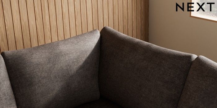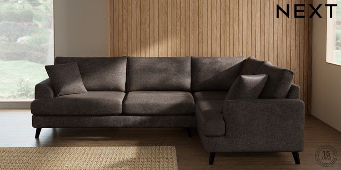 7.2.10 Buy Parker Large Corner Sofa - Right Hand Plush Chenille Mink Brown Low Retro Tapered - Dark from the Next UK online shop Click here to use our accessible website