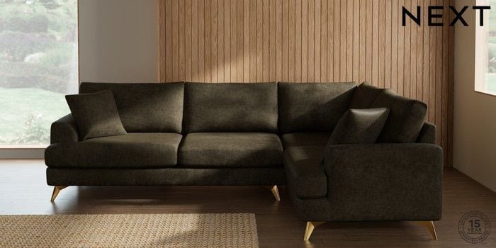 7.2.10 Buy Parker Large Corner Sofa - Right Hand Plush Chenille Moss Green High Metal - Brass from the Next UK online shop Click here to use our accessible website