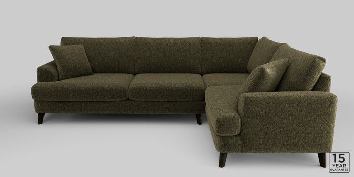 6.12.1 Buy Parker Large Corner Sofa - Right Hand Plush Chenille Moss Green Low Retro Tapered - Dark from the Next UK online shop Click here to use our accessible website