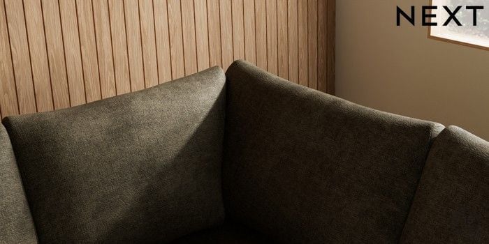 7.2.10 Buy Parker Large Corner Sofa - Right Hand Plush Chenille Moss Green Low Retro Tapered - Dark from the Next UK online shop Click here to use our accessible website