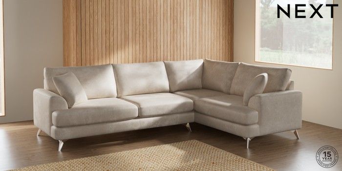 7.2.5 Buy Parker Large Corner Sofa - Right Hand Plush Chenille Oyster High Metal - Chrome from the Next UK online shop Click here to use our accessible website