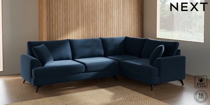 7.2.5 Buy Parker Large Corner Sofa - Right Hand Plush Velvet Easy Clean Airforce Blue High Metal - Black from the Next UK online shop Click here to use our accessible website