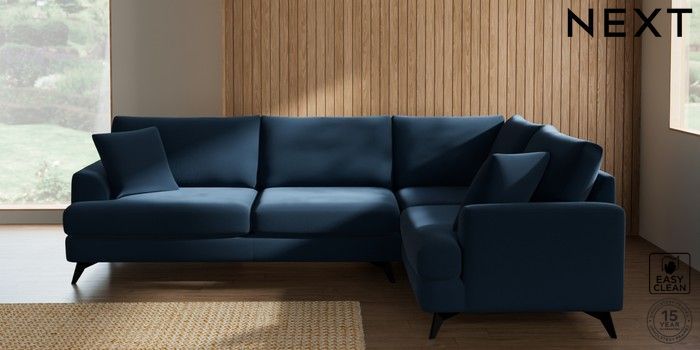 7.3.1 Buy Parker Large Corner Sofa - Right Hand Plush Velvet Easy Clean Airforce Blue High Metal - Black from the Next UK online shop Click here to use our accessible website