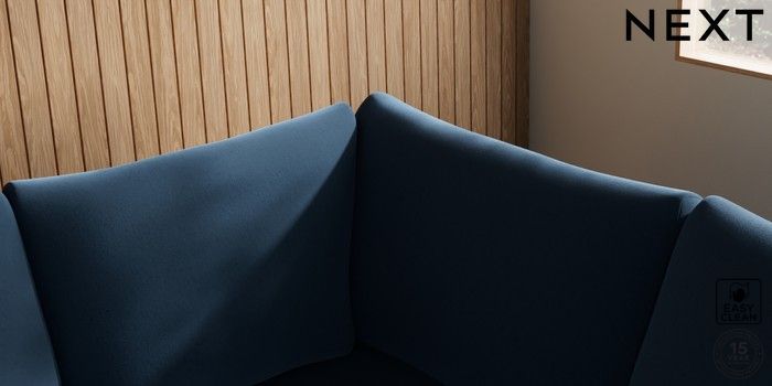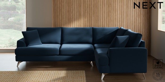 7.3.1 Buy Parker Large Corner Sofa - Right Hand Plush Velvet Easy Clean Airforce Blue High Metal - Chrome from the Next UK online shop Click here to use our accessible website