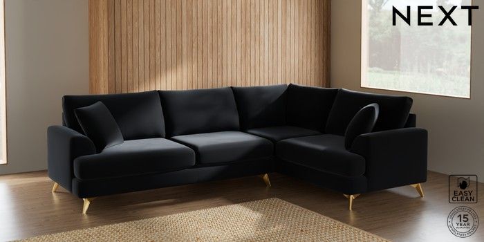 7.2.5 Buy Parker Large Corner Sofa - Right Hand Plush Velvet Easy Clean Charcoal Grey High Metal - Brass from the Next UK online shop Click here to use our accessible website