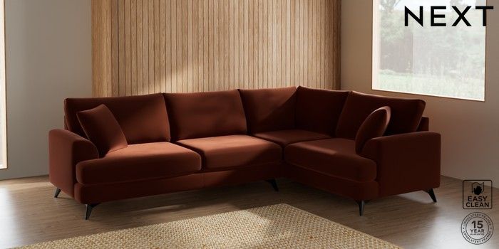 7.2.5 Buy Parker Large Corner Sofa - Right Hand Plush Velvet Easy Clean Ginger Orange High Metal - Black from the Next UK online shop Click here to use our accessible website