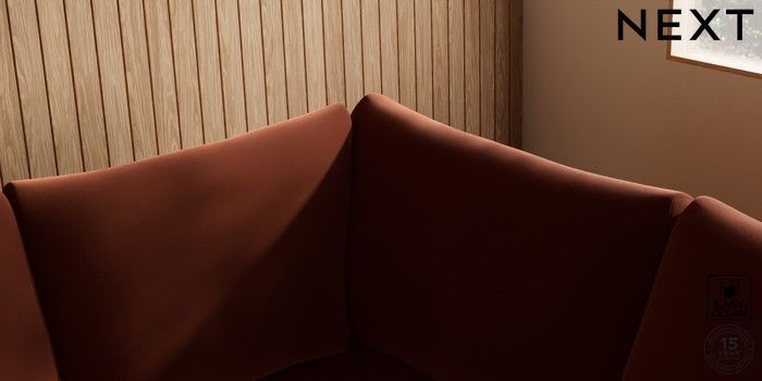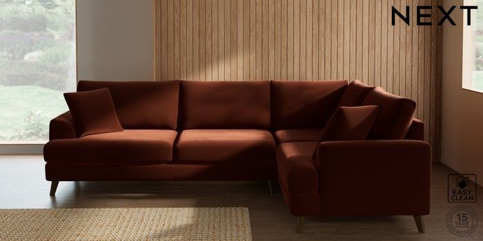7.2.10 Buy Parker Large Corner Sofa - Right Hand Plush Velvet Easy Clean Ginger Orange Low Retro Tapered - Mid from the Next UK online shop Click here to use our accessible website