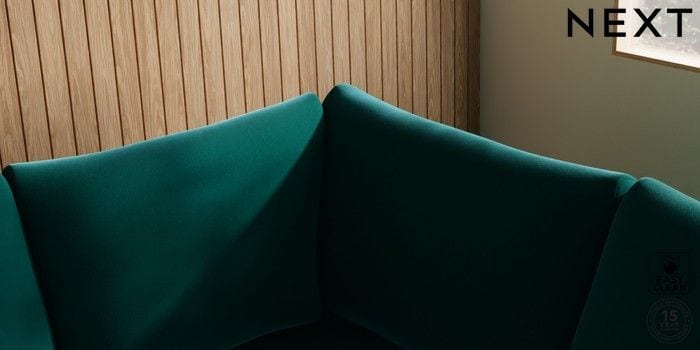 7.3.1 Buy Parker Large Corner Sofa - Right Hand Plush Velvet Easy Clean Juniper Green High Metal - Brass from the Next UK online shop Click here to use our accessible website