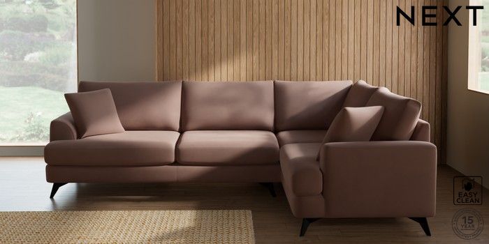 7.3.1 Buy Parker Large Corner Sofa - Right Hand Plush Velvet Easy Clean Mid Natural High Metal - Black from the Next UK online shop Click here to use our accessible website