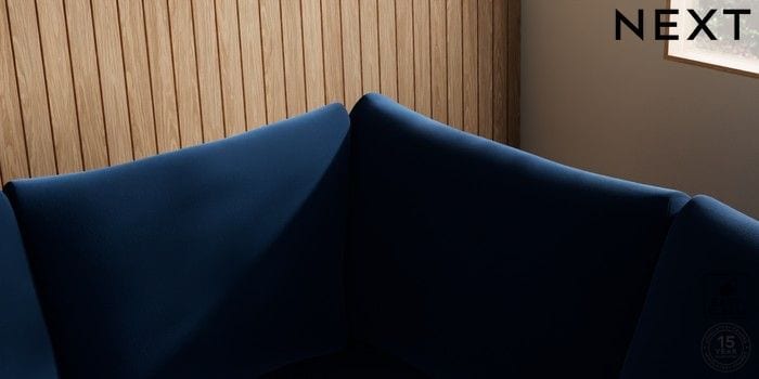 7.3.1 Buy Parker Large Corner Sofa - Right Hand Plush Velvet Easy Clean Navy Blue Low Retro Tapered - Mid from the Next UK online shop Click here to use our accessible website