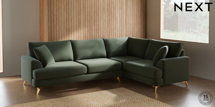 7.2.5 Buy Parker Large Corner Sofa - Right Hand Relaxed Linen Look Dark Green High Metal - Brass from the Next UK online shop Click here to use our accessible website