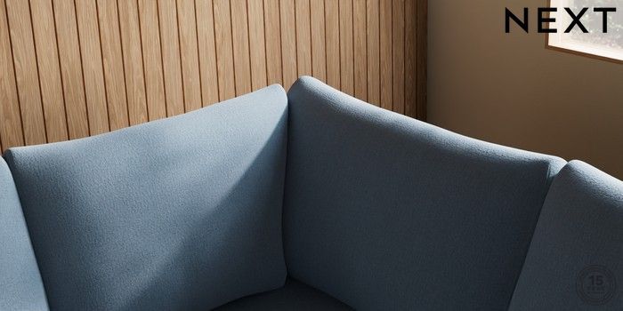7.3.1 Buy Parker Large Corner Sofa - Right Hand Relaxed Linen Look Mid Blue Low Retro Tapered - Dark from the Next UK online shop Click here to use our accessible website