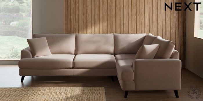 7.3.1 Buy Parker Large Corner Sofa - Right Hand Relaxed Linen Look Mid Natural Low Retro Tapered - Dark from the Next UK online shop Click here to use our accessible website