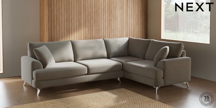 7.2.5 Buy Parker Large Corner Sofa - Right Hand Ripple Chenille Light Natural High Metal - Chrome from the Next UK online shop Click here to use our accessible website