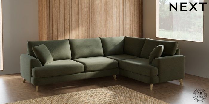 7.2.5 Buy Parker Large Corner Sofa - Right Hand Ripple Chenille Mid Moss Green Low Retro Tapered - Light from the Next UK online shop Click here to use our accessible website