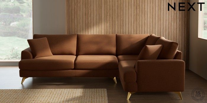 7.2.10 Buy Parker Large Corner Sofa - Right Hand Ripple Chenille Mid Rust Brown High Metal - Brass from the Next UK online shop Click here to use our accessible website